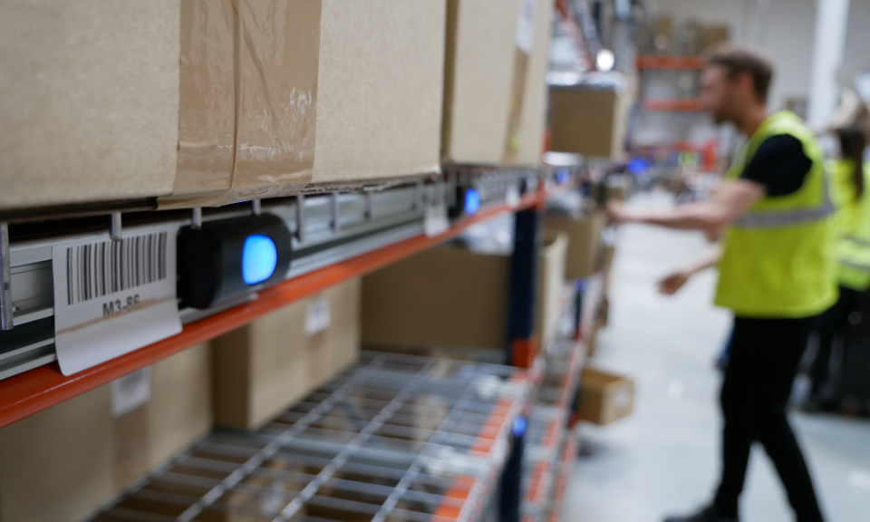 Le soluzioni Pick To Pack sono la scelta perfetta per concludere la preparazione degli ordini con successo. In abbinamento alla soluzione Put To Wall nella parte frontale e con la soluzione Pick To Pack basata sul processo Pick To Light nella parte posteriore del pannello di smistamento, i dispositivi luminosi segnalano gli ordini completati e pronti per essere imballati e spediti.